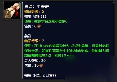 五、 小姜饼 非常低级的玩家都可以学会的一个食谱,不过这个食谱特殊的是仅在冬幕节才提供。你可以在烟林木场商人处购买这个食谱,只需几银,不要被拍卖行的高价格所迷惑了。制作的姜饼也是完成冬幕节任务所需的物品之一。