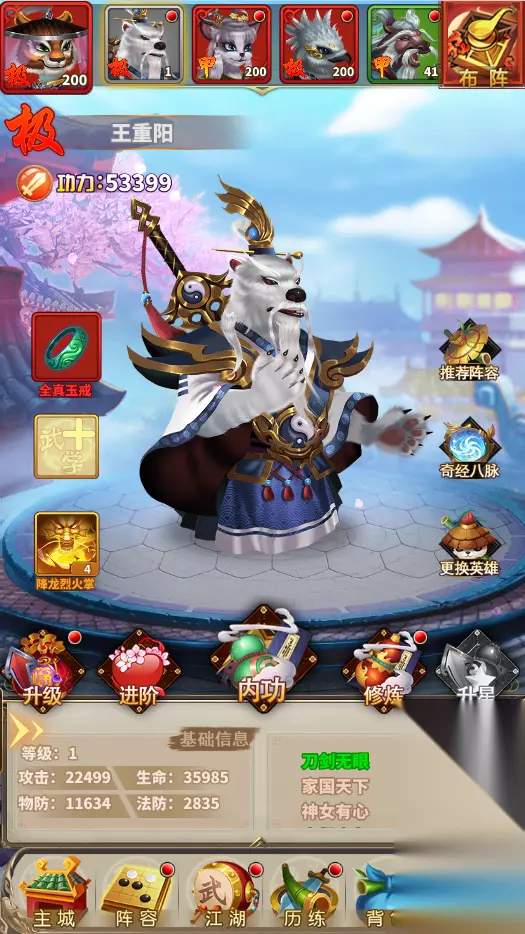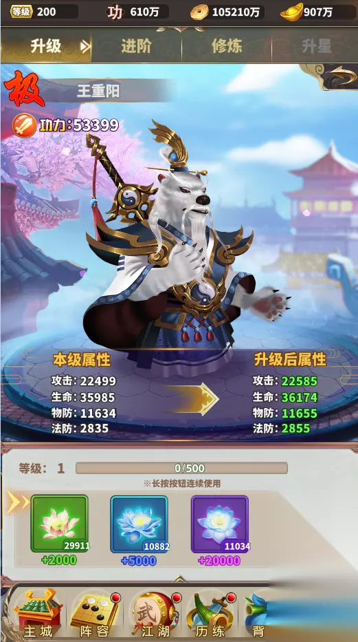 养成包括升级、进阶、修炼、奇经八脉、升星(后期开启) 升级 材料来源:通过江湖副本获得经验书,通过经验书进行升级, 等级:上限不超过主角等级