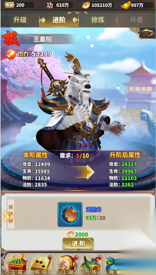 进阶 材料来源:通过江湖普通副本获得进阶丹,精英副本获得各种材料,通过消耗这些材料进行进阶。 进阶要求:每个进阶阶级都有对应的英雄等级要求。