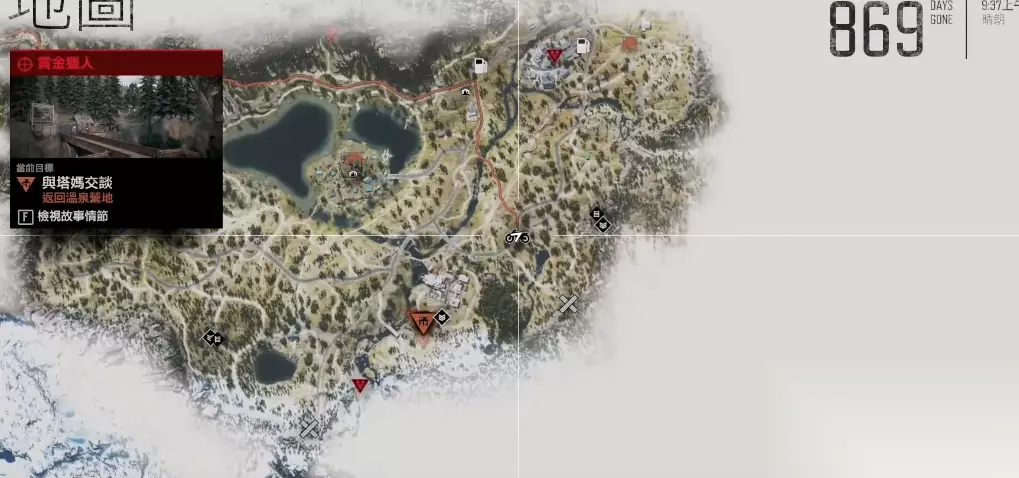 在温泉营地,围绕女角色的核心任务主要由营地管理者塔克老妈发布,这些任务不仅是推动剧情的关键,也直接影响着玩家与营地关系的发展及信任度的提升。塔克老妈曾是女子监狱的看守,作风强硬,她会委托迪肯去处理各种事务,其中找回女性幸存者罗斯是一个重要的选择分支任务,玩家需要前往温泉区北边的废弃营地调查,在高塔上找到被绑住的罗斯,救下她后可以选择放走或带回营地,这个决定会影响到后续的剧情走向,体现了游戏在叙事上的分支设计。