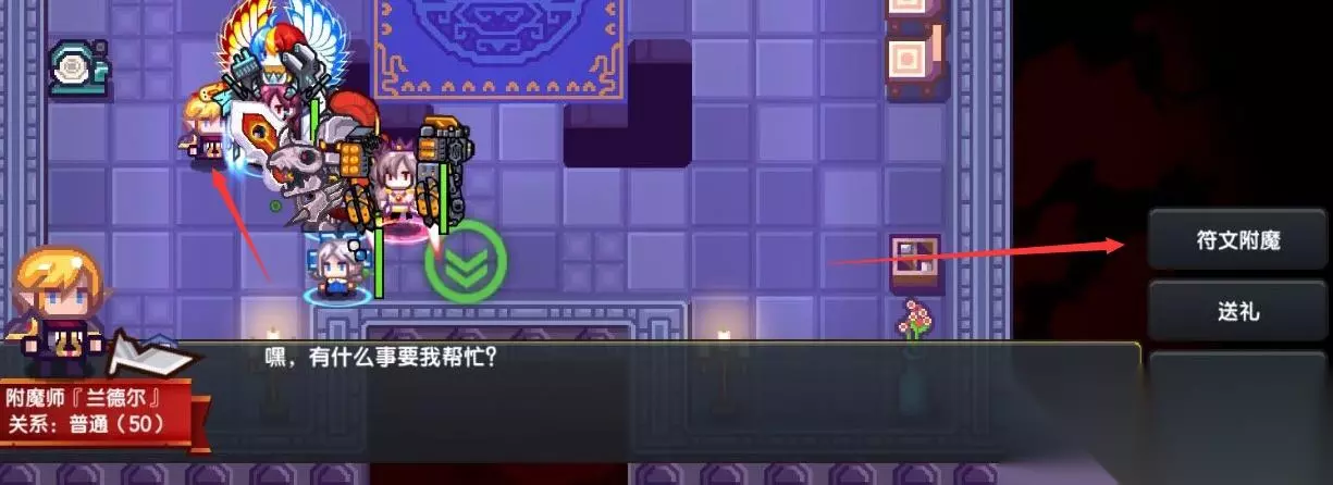 5、进入魔女小屋后,和附魔师对话,点击符文附魔。