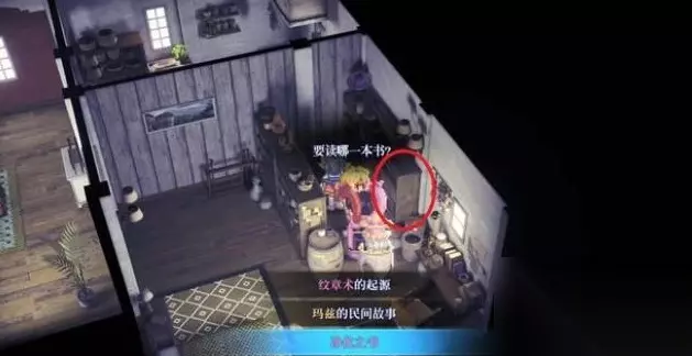 8.前往玛兹长老家厨房,调查下图书架并选择“净化之书”。