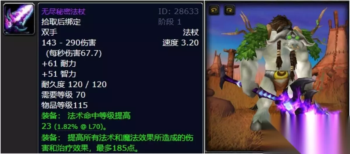 对于喜欢法杖的法系DPS,馆长的无尽秘密法杖必然是要强势拿下的。一流的法术命中搭配上冲击力十足的智耐,近乎挑不出任何毛病。造型也是狂野的很,长柄式的设计在顶部还萦绕着高贵的深邃紫,可谓是压迫感满满。 七:圣光的正义