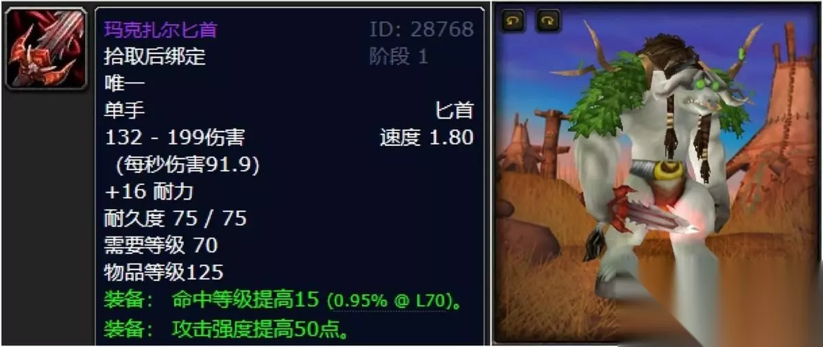马克扎尔王子圣光的正义,是喵叔我万年TBC时期扛过最久的一款神兵了。作为团队的头号种子奶德选手,也是因为这圣光的正义被他们无情嘲讽了不知道多久,毕竟敢问屏幕前的你见过都打太阳井高地的布胖了,我还扛着这丫的在MT后面丢三花拉愈合!如果你要问缘由的话,那么喵叔只能说我在默默地等我的完美恢复法杖! 八:玛克扎尔匕首