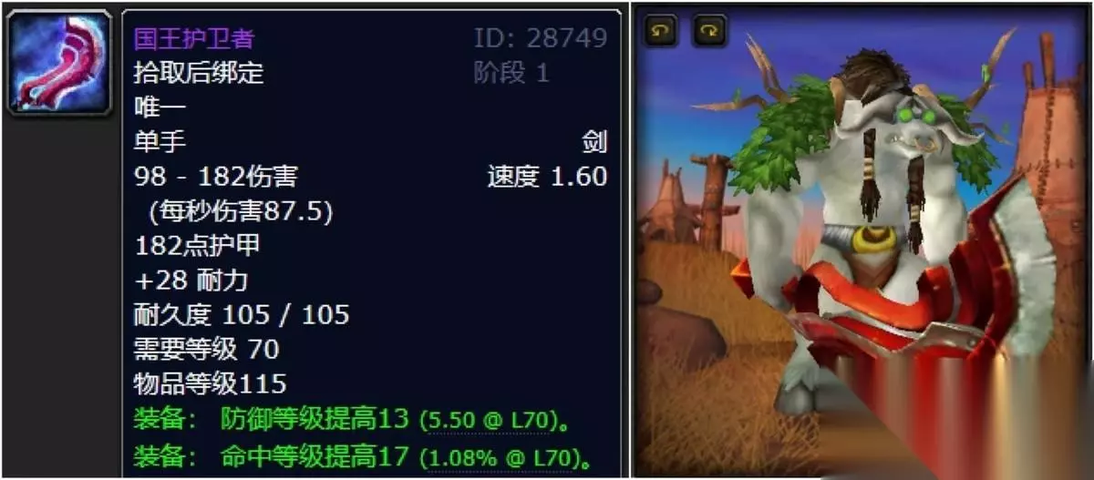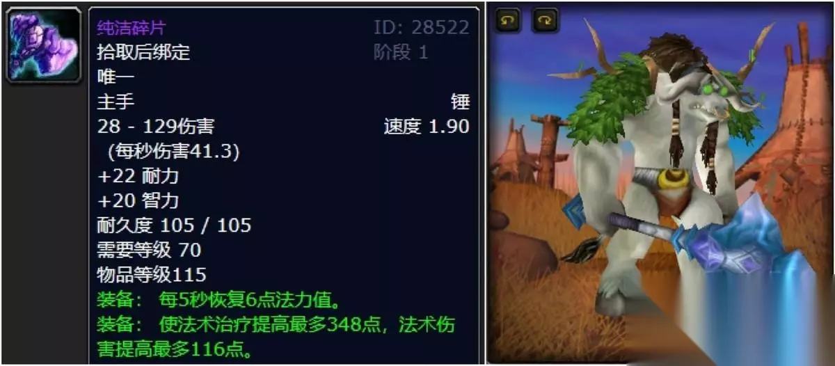 象棋出品的国王护卫者,喵叔愿称他为“TBC最强防御武器”。1.6的完美攻速之下,护甲、耐力、防等以及不俗的命中加持,四维之下让身为MT的你身材瞬间拔高,毫不夸张的说,有多少脸黑一点的大兄弟甚至在面对悲情男猪脚伊利丹的时候,还默默地从腰间掏出国王护卫者与之四目相对大眼瞪小眼。 三:纯洁碎片