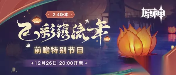原神2.4版本前瞻特别节目预告 《原神》2.4版本前瞻特别节目将于12月26日(本周日)晚20:00正式开启! 本次特别节目中,开发组的同学将给大家带来2.4版本的更新内容,直播间内还有兑换码等福利“掉落”。 同时,本次特别节目将在以下12个平台同步开播:B站直播间、斗鱼直播间、虎牙直播间、企鹅电竞直播间、快手直播间、抖音直播间、西瓜直播间、微博直播间、微信视频号直播间、4399直播间、知乎直播间和百度贴吧直播间,欢迎旅行者们前往收看!