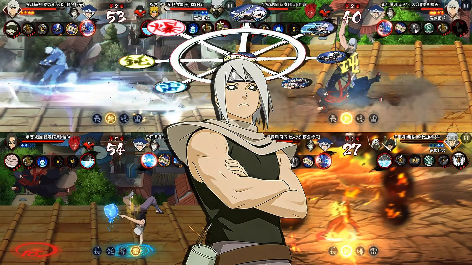 这是火影忍者手游的对战内容,展示了秽土转生千手柱间对战新春限定宇智波鼬的战斗画面,秽土转生千手柱柱间是该游戏里容易打出优势的强力忍者,能在对战中打出不错的伤害表现。