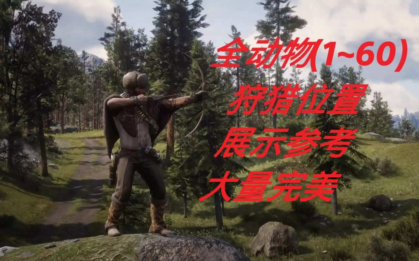 这是《荒野大镖客2》的狩猎攻略内容,展示了61~120号动物的狩猎位置,其中包含大量完美品质动物的分布点位,以地图和游戏实景的形式呈现,为玩家狩猎提供参考。