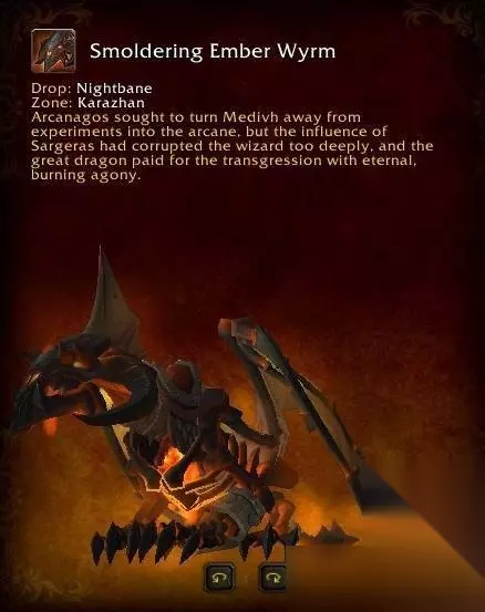 副本:魔导师平台;位置:奎尔丹纳斯岛;boss:凯尔萨斯·逐日者 3、炽热战马 副本:卡拉赞(旧版);位置:逆风小径;boss:猎手阿图门 4、奥的灰烬