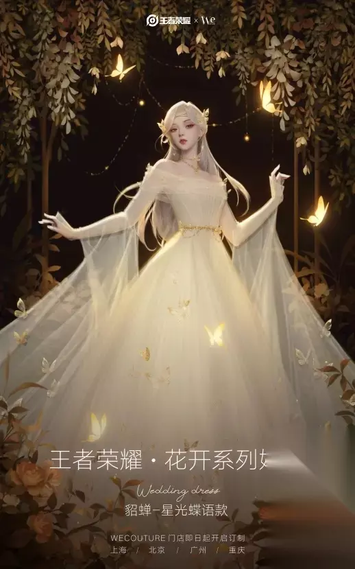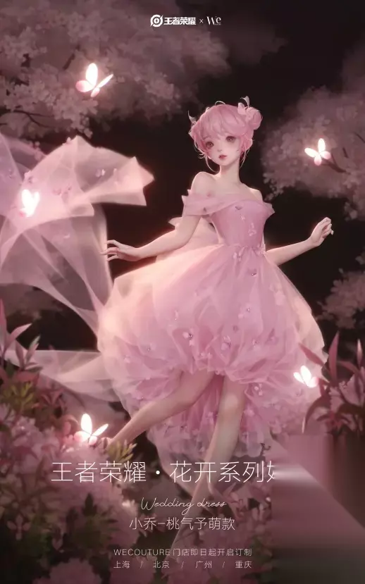 王者荣耀推出联名花开系列婚纱,以瑶、貂蝉、小乔、王昭君四位英雄为设计原型,从英雄气质与元素出发,汲取传统色彩,融合没骨画技法、水袖等传统工艺与高定技法,兼具东方气韵与当代女性魅力,相关设计图与真人展示已放出。