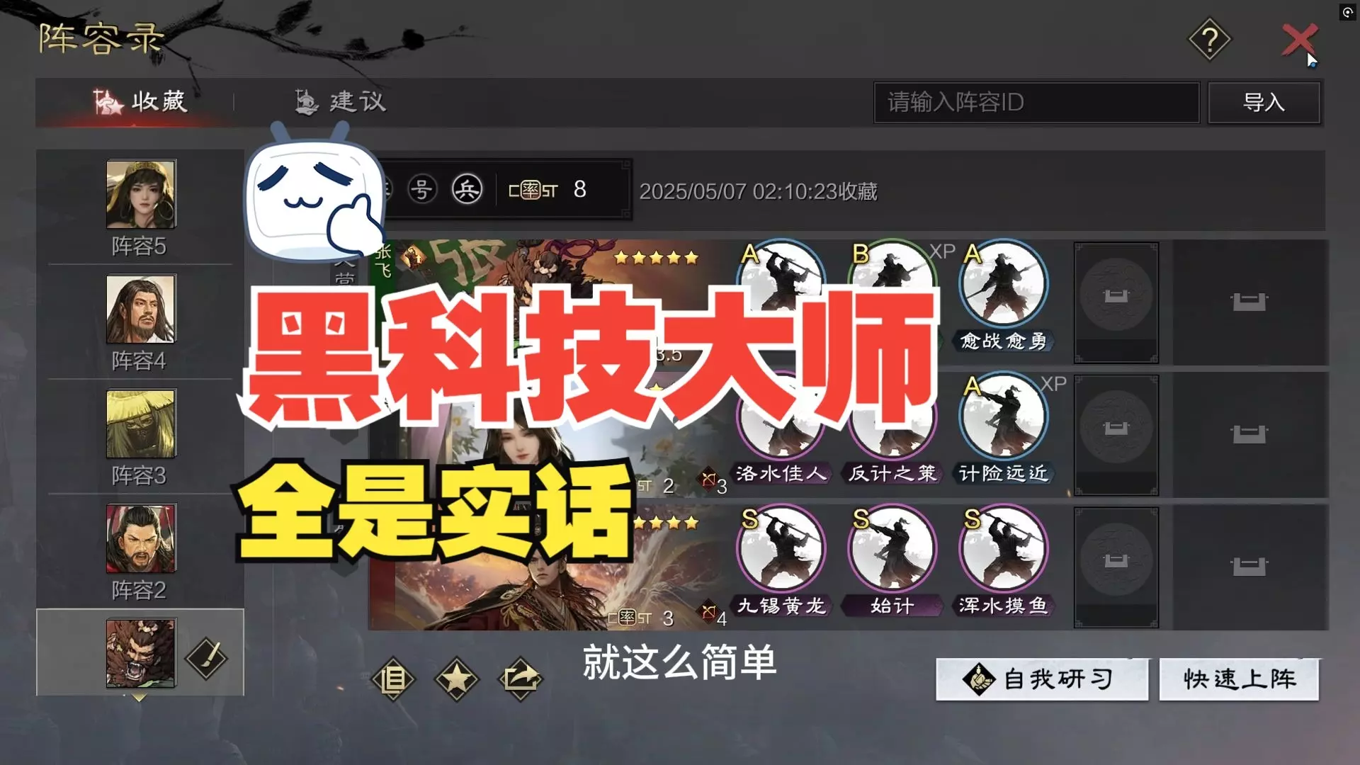 本来想用兀突骨+盛气针对兵刃的,因为奇门八阵的青铜炉改用了田丰