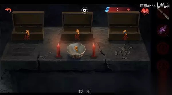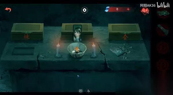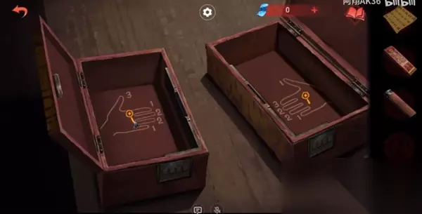 7、之后就是等烟燃尽还是不能驱散,所以就要撒点红包; 8、进入这个房间中,桌子上有囍盒,左侧的解谜是【鸡、兔、龙、狗】,打开是鞭炮,右侧是【牛羊虎猪】,打开其中是黄纸钱,这个解谜是女主那边镜子上的线索;