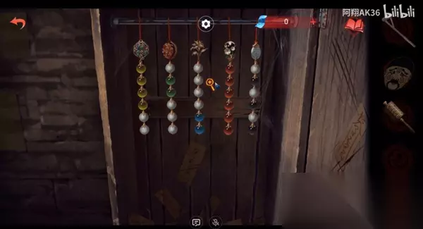 4、等待男主解谜之后出现新的场景,到右侧场景的位置,先把左侧扇子要按照正确顺序排列(线索在男主那边可以拿到的),之后在右侧拿到拐杖;