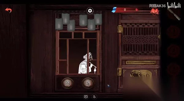 11、回到第一个场景,将线索告诉女主打开这个台阶上的箱子门,然后两个一起操作,就是两边的皮影一样就是同,不一样就是异;