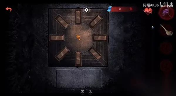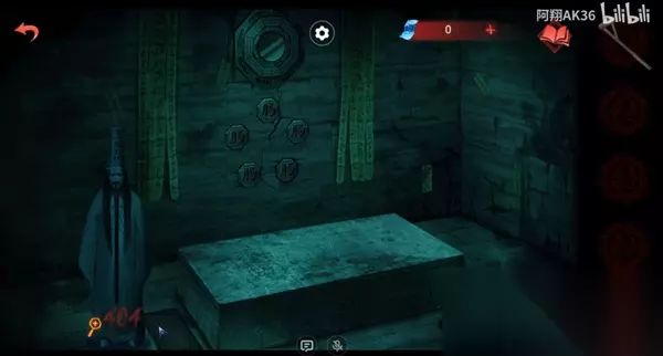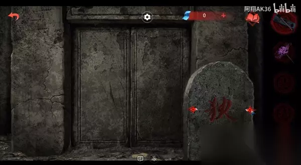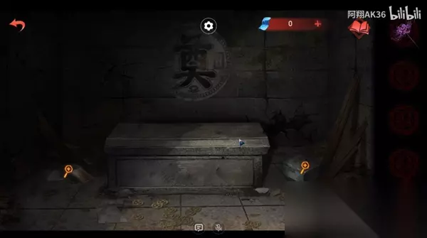 12、然后去后面的密室,把馒头和木牌放在右侧地上,再把铜钱撒在地上(周围的红字是男主那边的线索);