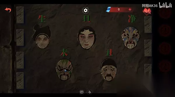 3、然后点击左侧拿到脸谱,再点击右侧的哪些牌子,这些牌子的顺序,就是女主那边地上小盒子里的四行字,按照这个顺序排列即可;