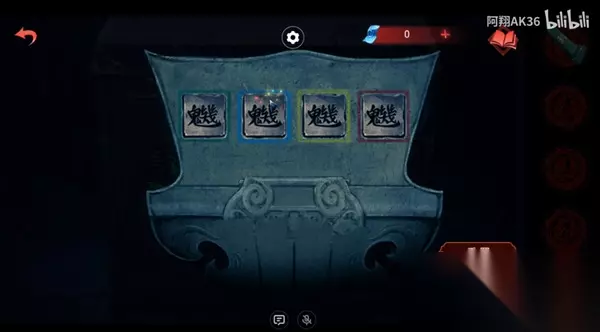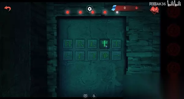 3、完成之后可以拿到笔墨,然后去第三个场景,点击左侧的石门,使用笔墨来写字; 4、在这个场景的左侧中间右侧都有石碑,分别对应三个字,这个字的顺序就是女主那边有蜡烛石桌上,小盒子的字,切换成【林、狄、金】;