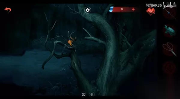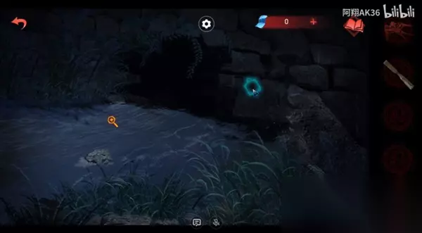 6、然后回到第一个的场景,这里的图案消失,女主把获取的石龟丢入河里,右侧出现机关,可以拿到蛇,这里也会出现石龟的图案;