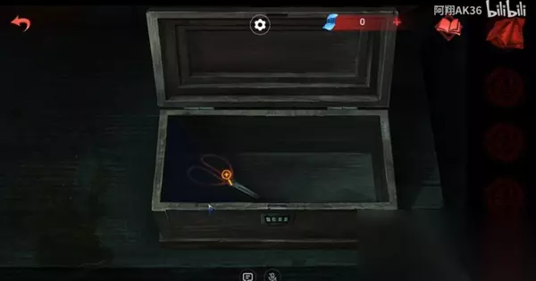 4、然后进入左边的门里,在右侧桌子上有一个盒子是彩灯要解密,男主按照女主那边门上七彩灯的闪烁次数来解开,其中有剪刀,剪刀要给女主(在房间的台子上烧给女主就行);