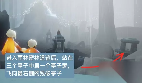 光遇先祖位置攻略 光遇雨林哭泣先祖 位置:雨林 具体位置 1、我们进入雨林飞到雨林的水母图中,飞到右边的亭子中;