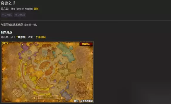 17、铁炉堡高贵之书任务: 要求等级: 40 阵营要求: 联盟 任务开始: 布兰度尔·铁锤(坐标铁炉堡23.1,6.1) 任务结束: 达索瑞恩·拉尔