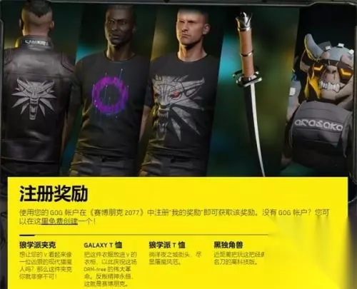 注册奖励: 使用您的 GOG 帐户在《赛博朋克 2077》中注册“我的奖励”即可获取该奖励。没有 GOG 帐户?您可以在这里免费创建一个!