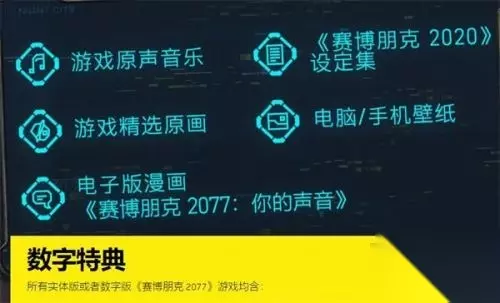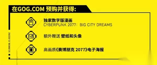 只要将游戏与 GOG 账号进行关联(无论游戏来自什么平台),都能获得丰厚的数字特典以及游戏内物品奖励。 奖励内容: 领取《赛博朋克 2077》的专属游戏奖励,以及日后推出的其它精彩内容,还有购买游戏可以获得的数字特典。 数字特典: 所有实体版或者数字版《赛博朋克 2077》游戏均含: