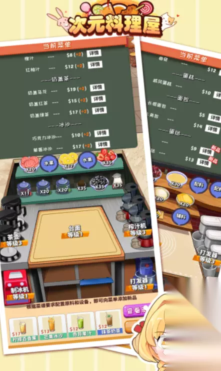 如果你喜欢日漫风格的餐厅经营游戏,那可以看看这一个。玩家需要在这款游戏中不断解锁新的菜品,再通过升级菜品和装修提升收费,赚取更多经费,还可以签约不同的员工为客人提供更效率更优质的服务,还可以购买各种风格的家具,无论你喜欢欧式、日式还是中式,都可以解锁相应的家具自己进行搭配,装修出一个让你自己满意的风格,让客人流连忘返。 扫码下载该游戏 高速下载 普通下载 优先233乐园APP下载 3、《次元料理屋》