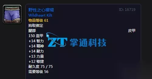 150 盔甲 +14 智力 +14 精神 +14 耐力 +13 力量 +12 敏捷 耐久度 75 / 75 需要等级 56
