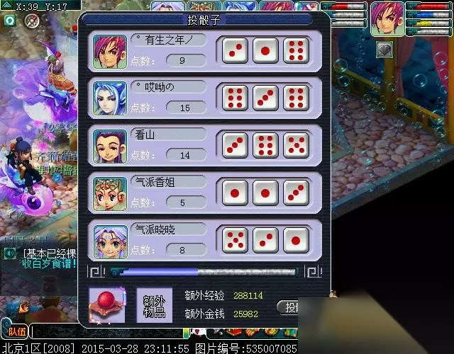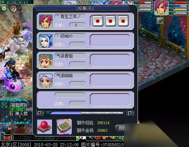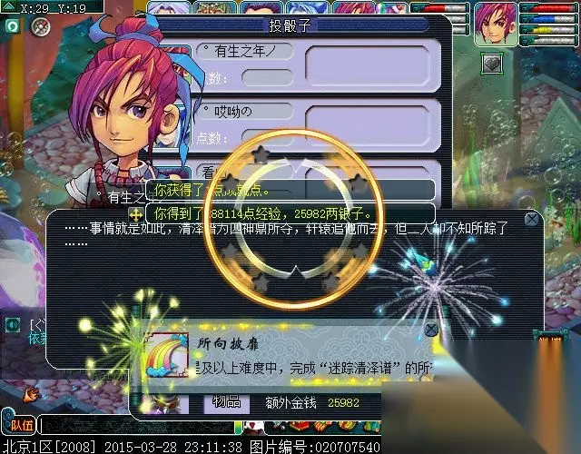 战斗结束,场景切换到龙宫,点东海龙王对话,摇色子,拿奖励,由于本次神器任务中,我们完成了任务中提示的所有紧急任务,所以,就出现了下面的情况: