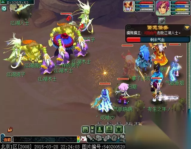 右键使用阿盘的地图,前往丝绸之路(289.62)、(290.38)、(329.51)、(264.64)调查江湖人士,进入战斗,(战斗难度★★)应紧急任务要求,所以先点杀主怪。