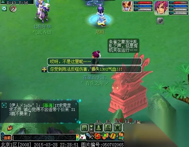 这里需要一提的是,如果龙昭提示的不是你对应的神像,而你去点关闭的话,那将受到阵法的反噬伤害,损失一定的气血。所以此处要注意自己的气血,记得补充哦。