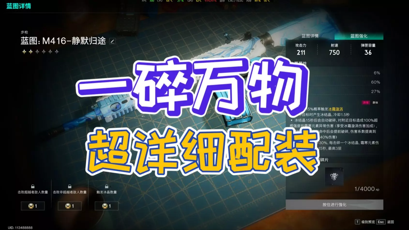 这是《七日世界》里M416-静默归途的模组搭配攻略,该武器兼具群伤与单体伤害能力,是下本利器。攻略介绍了武器自动、手动引爆的伤害效果,还给出了模组搭配建议,推荐冰核激化词缀异能或冰霜漩涡,助力提升霜寒元素伤害。