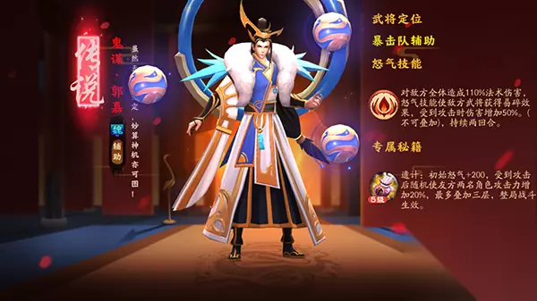 在笔者看来,《胡莱三国3》鬼谋·郭嘉的推出,不但是对“暴击流”阵容打上了一剂强心针,更是为游戏的多元化阵容流派创造了更多的遐想,真想见识一下,有了郭嘉、诸葛亮双辅助坐镇的“暴击流”,能否敌得过传说中的“火毒奶”呢?