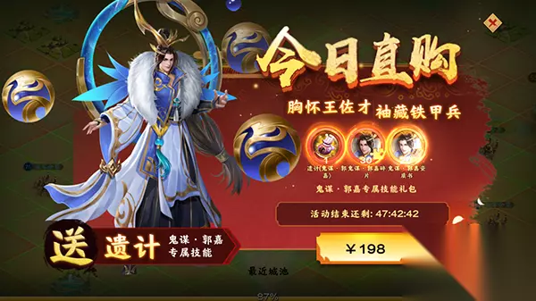 t15_2-t15_1:5.0 重大利好消息:《胡莱三国3》新武将登场,王佐之才——鬼谋·郭嘉,助你称冠官渡! 郭嘉,三国时期著名的谋臣,他一生助曹操平吕布、定河北,灭乌桓,定辽东,为魏国的强盛呕心沥血、献计献策,更是以惊人的才略,建言献计,成就了一代枭雄曹操,王佐之才尽显无疑,如今,郭嘉在《胡莱三国3》的登场,是否也能助你称王呢?