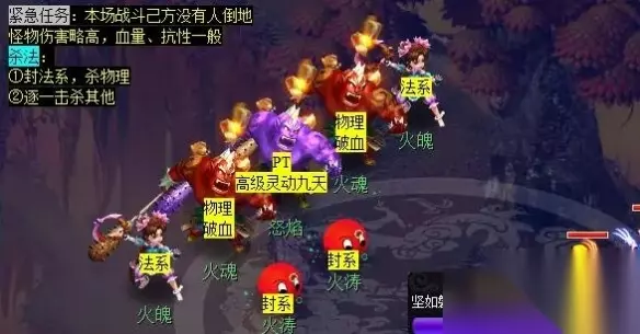 离焰明火珠是神器任务系列转中的任务,那么该任务该怎么完成呢,玩家需凌霄宝找【杨戬】或找【传令天兵】领取任务,然后在魔王寨(28.58)附近找【魔王寨弟子牛大、狼大、虎大】对话,接下来就由小编给大家带来了详细的梦幻西游离焰明火珠任务攻略! 梦幻西游离焰明火珠任务攻略: 任务准备: 1、凌霄宝殿(55.26)找【杨戬】或长安城(217.169)找【传令天兵】领取任务,难度选择3星,消耗20体力。 2、队伍阵容:WD、NE、魔 ES、HG、SM 3、物资:5 件不同的60武器(随机)