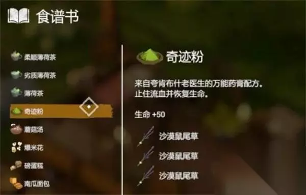 20、【奇迹粉】 效果:生命+50 配方:3*沙漠鼠尾草