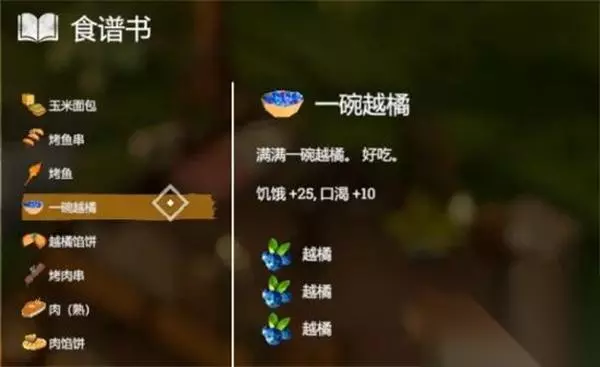 12、【一碗越橘】 效果:饥饿+25,口渴+10 配方:3*越橘