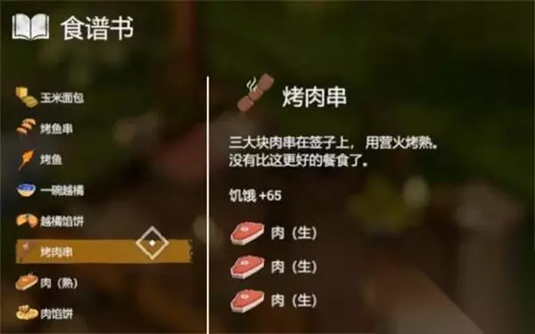 14、【烤肉串】 效果:饥饿+65 配方:3*生肉
