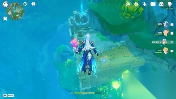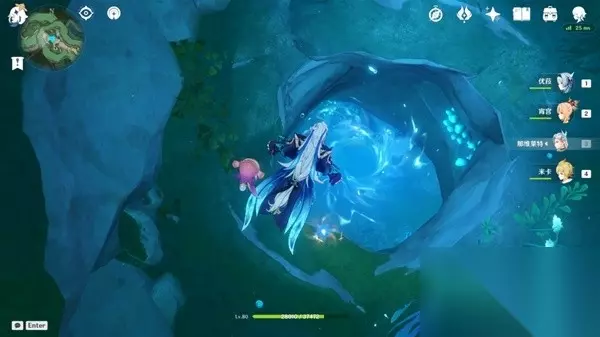 走进洞穴开启隐藏任务,通往奇点之路。 只需呀按流程走到最后就可以击败两个特殊机关,然后直到最后完成任务来到最终地点(任务过程中只有一条路),如下图。该地点还有一个水神瞳和神秘矿石。