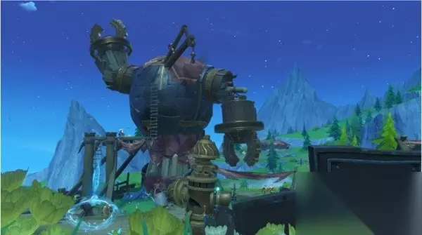 第四块矿石 地图中央实验室遗址的右下有一片丘丘人遗址,在哪里很容易看到一个大型机器人。 完成附近解密可以获得隐藏成就:未记录的功能。 机器人手臂上有着一块神秘矿石。