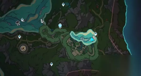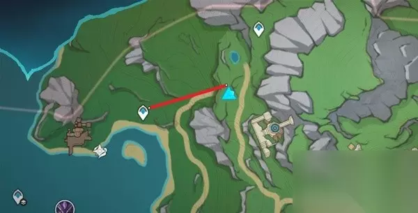 第七块矿石 在世界任务:通往奇点之路的最终地点,可以获得水神瞳,华丽宝箱,神秘矿石。 前往路线如下: 先前往下图位置的洞穴入口。