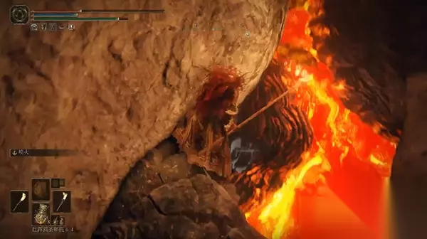 然后我们就会在火山官邸复活,不过这里是熔浆岩层,需要我们去开赐福点,并且从这里出去也有条件;
