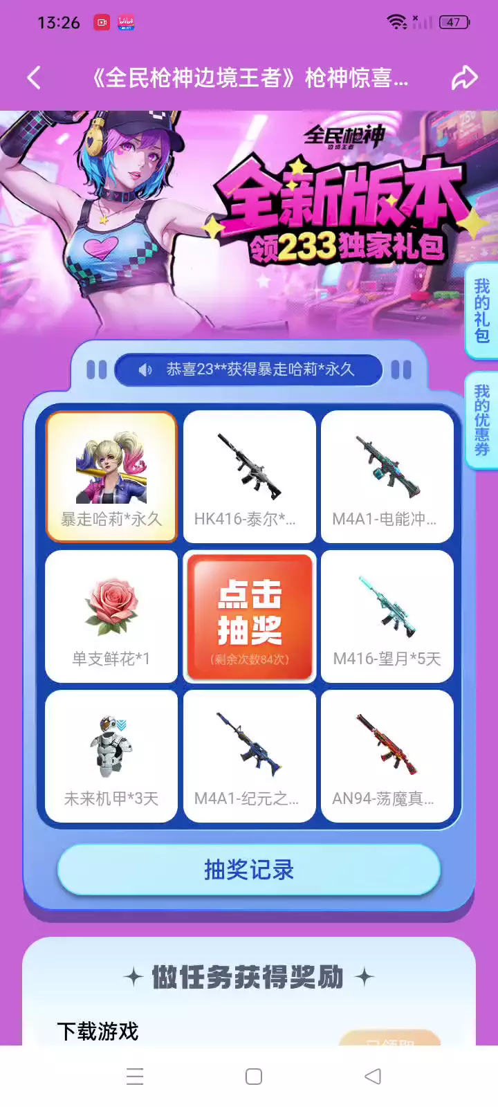近百抽啥也没中。