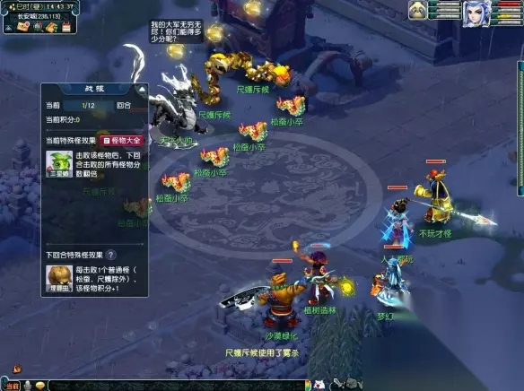 3、害虫退散活动需要角色等级≥50级,队伍人数≥3人才能参与,在位于长安城(241,116)的巫灵儿处选择选项“害虫退散(挑战怪)”即可开启战斗。