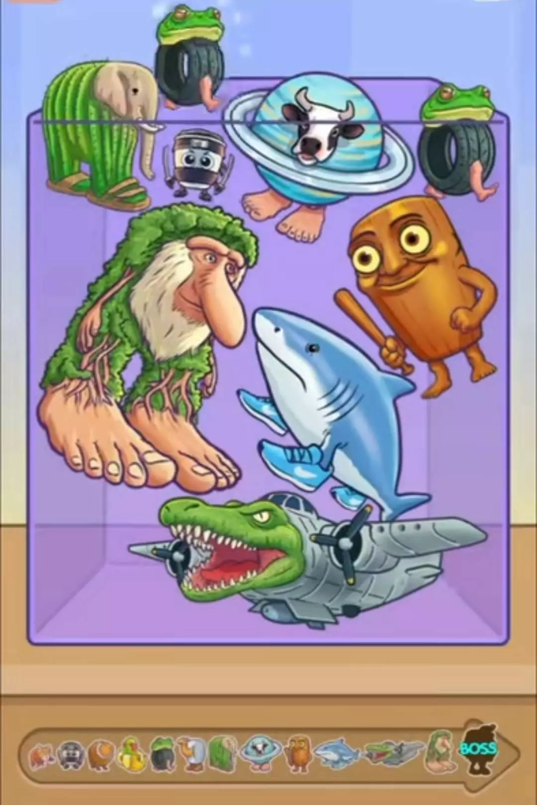 挑战开始,从第一排的虾猫Trippi Troppi,到第十二排的问号怪物Brr brr Patapim,要合成到终极boss七帝王Trulimero Ballerina Tralalero Tung Tu