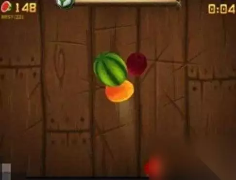 3、如果炸弹出现了,混在水果中间时,千万不要着急去切,一定要等水果下降了,分开后在开始切!