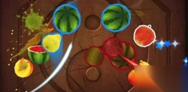 5、如果出现石榴,可以用环形切割的方式,不停地在屏幕划圈切割!