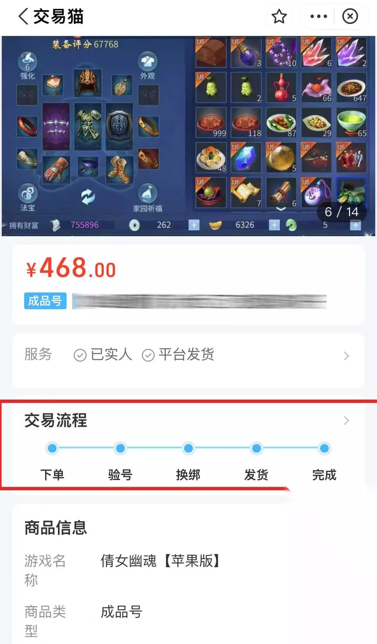 2、买号快速 买号流程如果过于复杂的话,相信会让很多人感到烦躁。毕竟每个人买了号都想快速登录,前往倩女幽魂的世界里呼风唤雨,而不是因为繁文缛节而在那里胡搅蛮缠。在交易猫里可以一键买号,仅需简单的换绑验号后即可让你收获顶级账号。