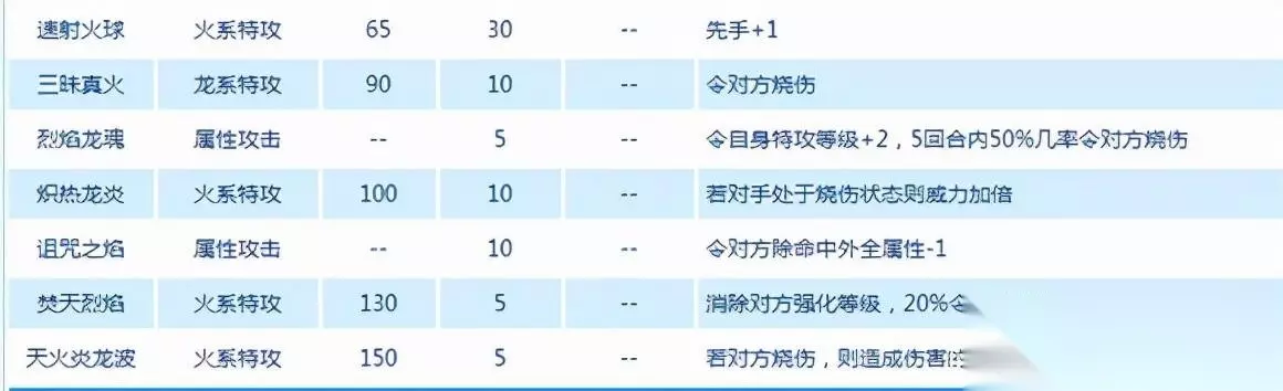 三味真火这个技能虽然是一个选带技能,但是100%烧伤的效果还是挺强的,火焰旋涡的究极加强版本,而且烧伤这个状态本来就是非控制类效果里面最强的异常状态,减伤+扣血配合炽翼火龙本就不错的三围耐久大大提高了炽翼火龙的消耗能力,保证炽翼火龙能够稳定做到站场,也是废掉了对方的输出能力从而迫使下场。 当然也可以使用强化技能烈焰龙魂5回合50%烧伤触发,两种方式都行,但是大家还是倾向于烈焰龙魂一些。